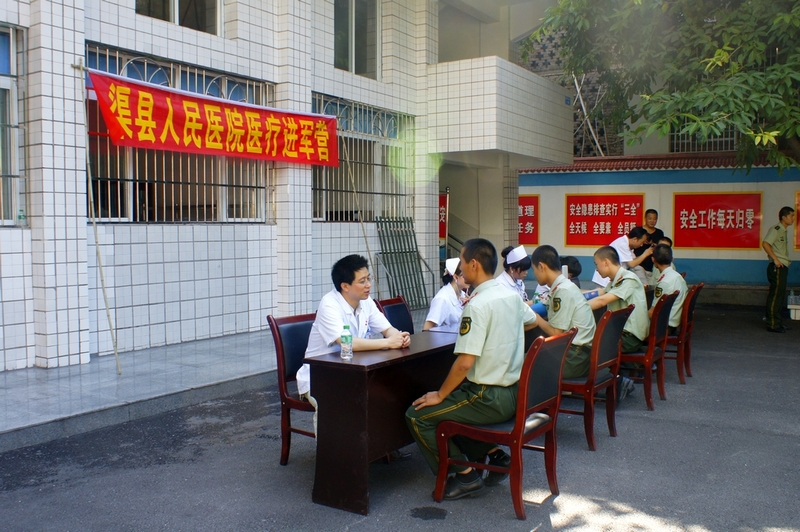 “八.一“建军节前夕,渠县人民医院武装部组织医生、护士到县武警中队,为战士们进行义诊。