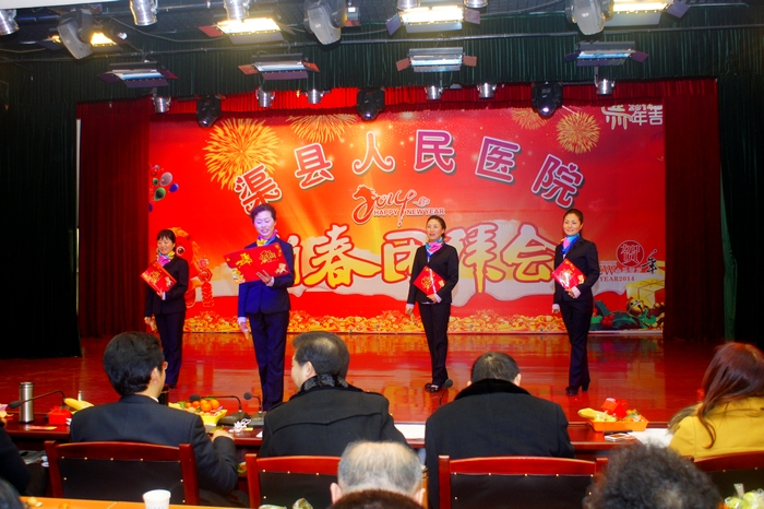 2014年1月27日,渠县人民医院举行“2014年新春茶话会”。医院党委书记、院长李健和全体党委成员、院领导与来自全院各科主任、护士长、班组长、离退休人员代表、先进人物及民主人士一道,畅所欲言,分享2013年的喜悦,描绘马年美好前景。