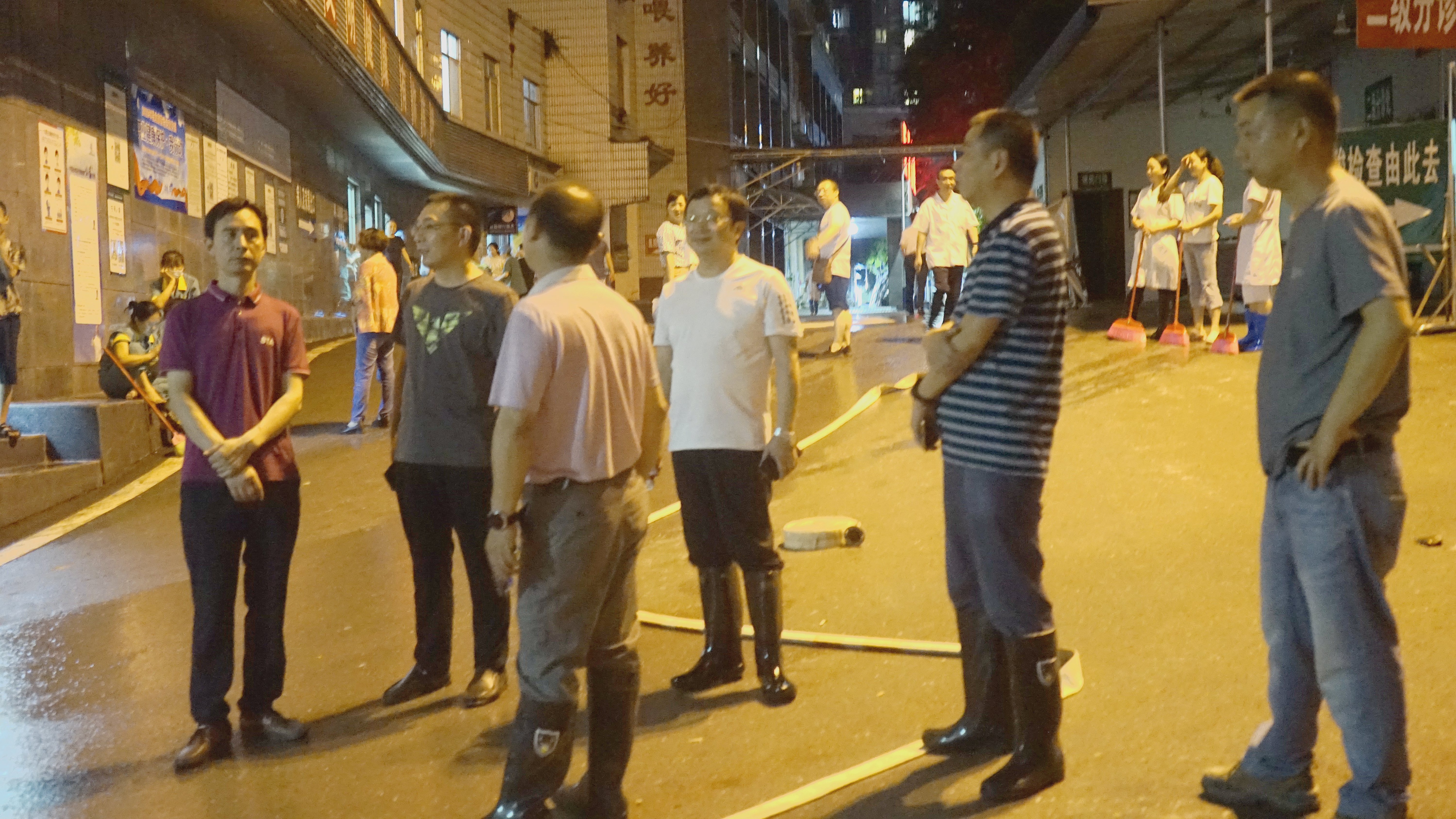 晚上9点10分,洪峰过境,城区水位上涨至250.94米(净涨20.94米),党员们守在洪水现场,等待洪水退去,凌晨5点左右,洪水漫至二门诊病员食堂后开始消退。党委书记熊方华、院长赵明才在现场指挥,积极开展退水清淤恢复工作。按照任务分工,行后第一党支部负责开展洪水清淤工作,行后第二党支部协助科室搬回复原设备物资。行后第一支部的党员们通宵达旦,不顾身体疲累,充分发扬连续作战、顽强拼搏的职业精神,趁着水退清淤泥、除障碍,鏖战至12日凌晨7点,将被淹的职工食堂、二门诊各诊室全部清理干净。