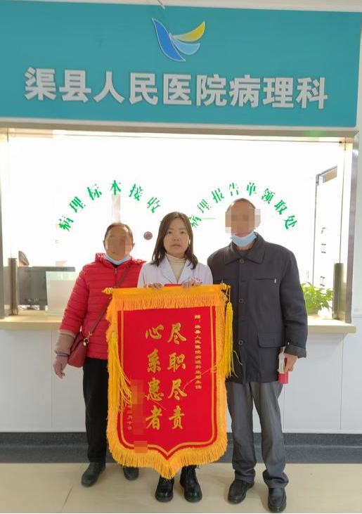 近日,渠县人民医院病理科的工作人员惊喜地收到了一面饱含深情的感谢锦旗,这面锦旗是由一位心怀感激的患者温某某亲自送来的。