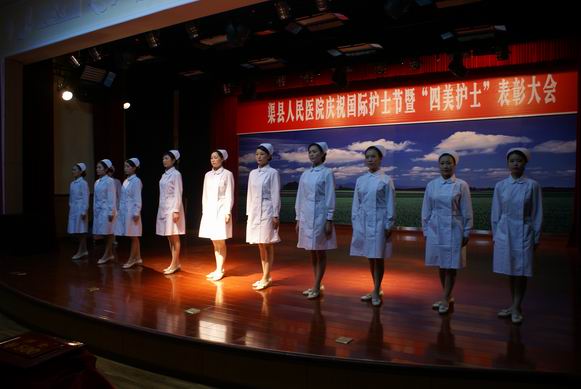 ──渠县人民医院隆重庆祝国际护士节 5月7日下午,渠县人民医院701会议室灯光闪耀,音乐激荡,“热爱医院,热爱护理专业,展护士风采”、热烈庆祝国际护士节,向四美护士学习”的横幅高挂在会场两侧。院级领导、全院中层干部、班(组)长、行后职能部门全体工作人员及来自临床一线的护理工作人员共300余名参加庆祝活动。