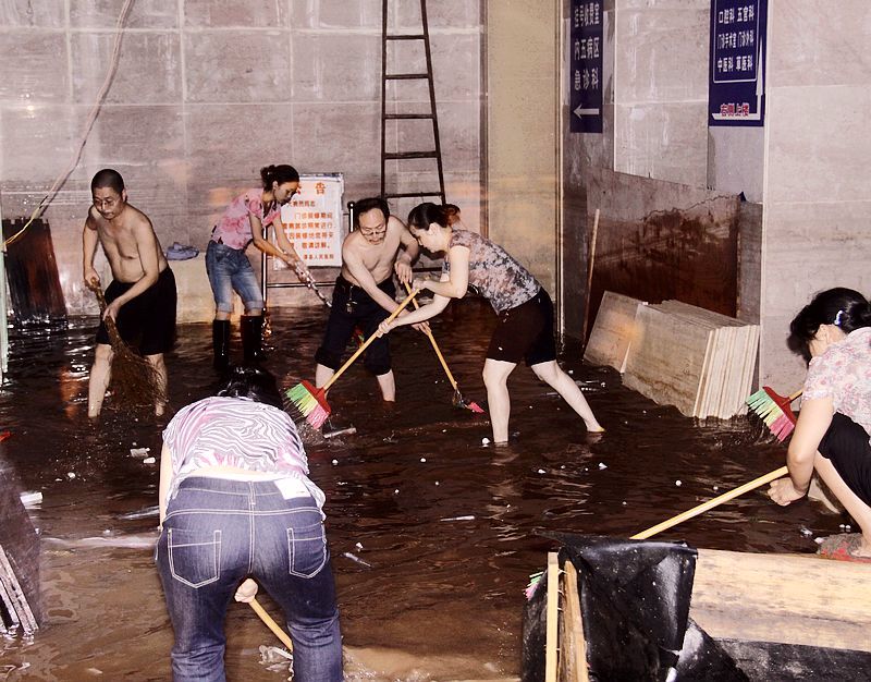 19日下午6时,肆虐的洪水渐渐退去,全院职工忘记昨日一天没休的饥渴与疲劳,争先恐后地拿起铁铲,扫帚,做彻底清淤防疫工作,除去院内死角所存的污泥垃圾。采取“水退人进”的措施,力争恢复我院整洁,卫生的原貌。