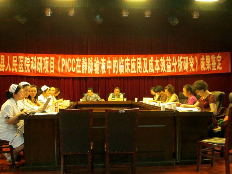 6月1日上午9:00,在“701”会议室举行了护理部主研并完成的《PICC在静脉输液治疗中的临床应用维护成本效益分析研究》科研项目鉴定会,会议由县科技局副局长杨方程、科技鉴定股股长李科国参加并主持。渠县人民医院党委委员、副院长孙自杰、医教科主任蒲海清、护理部主任宁强华以及主研《PICC在静脉输液治疗中的临床应用维护成本效益分析研究》相关人员参会。