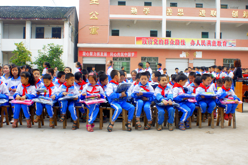书包、文具盒、字典等学习工具,同时还对80名特困
