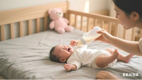 由于喂奶过量或过早添加淀粉类食品导致食物无法完全消化,抑或是新生儿吸入过多空气,从而引发胃部膨胀和呃逆,有时还会出现呕吐现象,进而导致新生儿哭闹。