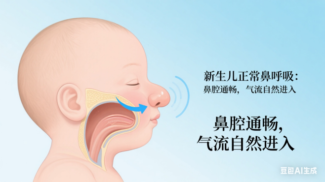 新生儿通常采用鼻呼吸,当出现鼻塞情况时,只能用口呼吸。但由于对口呼吸的不习惯,新生儿就会表现出不安。在哺乳时,新生儿需要闭口,这使其更无法吸气,只能放弃奶头并大声啼哭。