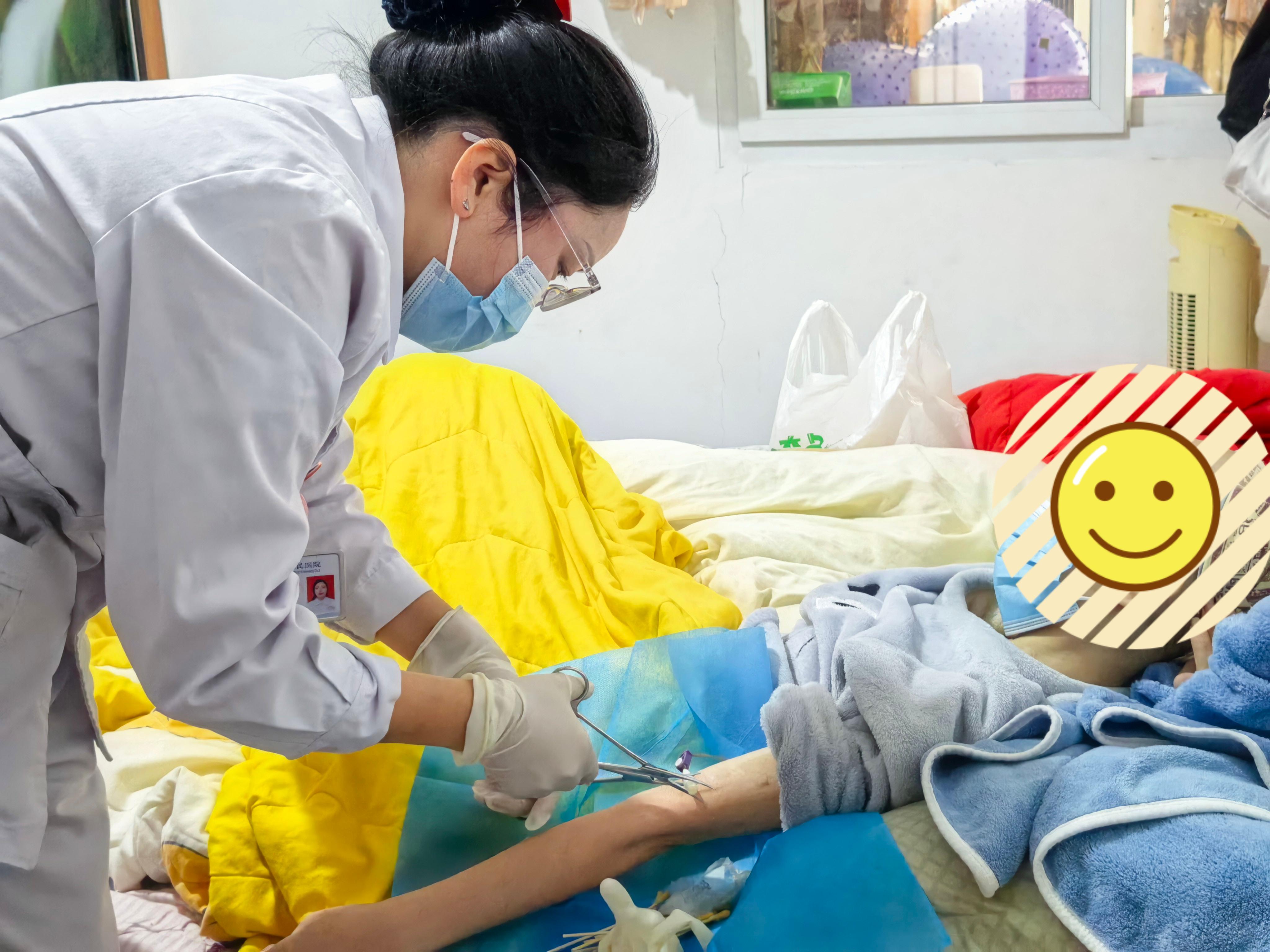 按照预约时间,医院两名静疗专科护士携带齐全的专业物资,准时抵达患者家中。服务全程严格遵循院内标准化操作流程与无菌规范,顺利完成导管评估、冲管及敷料更换等操作。同时,针对患者日常护理中遇到的疑问,护士给予针对性健康指导,细致讲解导管维护要点、自我观察方法及异常情况处理措施,让患者在家也能安心做好导管护理。