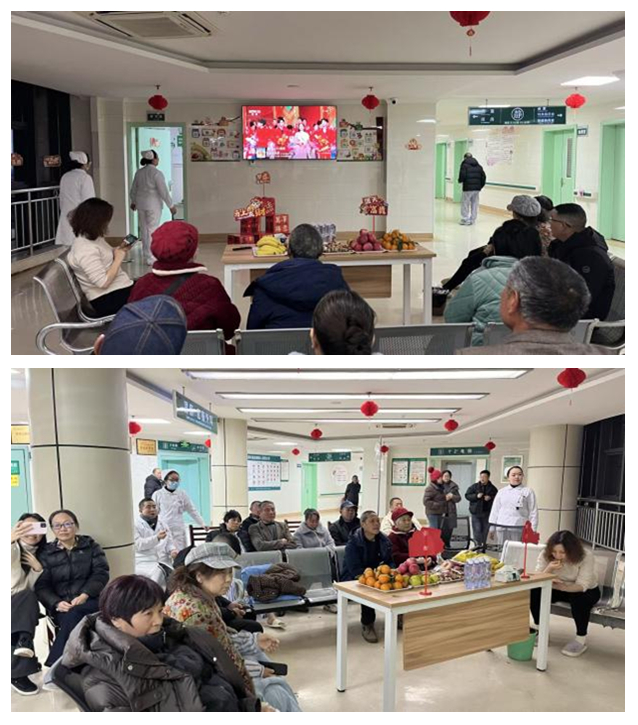 清晨,医护团队逐一走进病房,为患者送上新年问候与节日礼品,亲切交谈、叮嘱康复注意事项,一句句暖心话语、一声声真挚祝福,让病房充满温情与感动。随后,大家一起布置病区,挂灯笼、贴窗花,将病房装点得喜庆温馨,处处洋溢着浓浓的年味儿。傍晚,医护人员与留院患者、家属围坐一堂,同吃瓜果、共看春晚、闲话家常,欢声笑语不断,温馨氛围堪比家中团圆。
