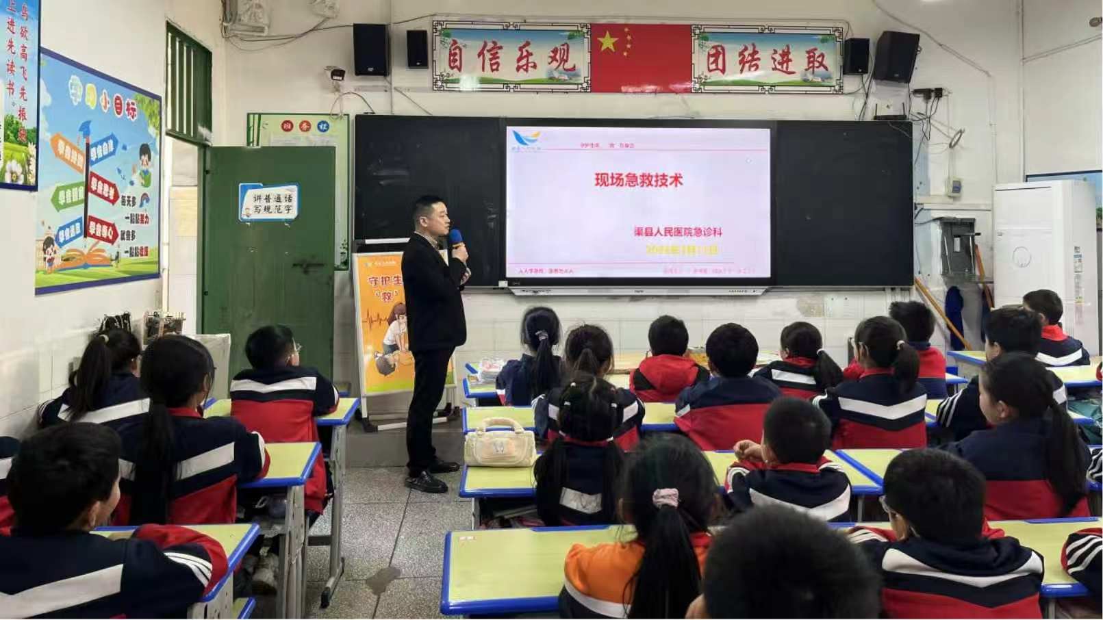 渠县人民医院急诊科主任李冬围绕日常意外伤害,开展“生活中的急救小常识”专题讲座。他用通俗易懂的语言讲解了气道异物梗阻、烧烫伤、创伤止血等应急处理方法,帮助学生树立急救意识,提升自我保护能力。讲座内容贴近生活,学生们积极参与互动,现场气氛热烈。