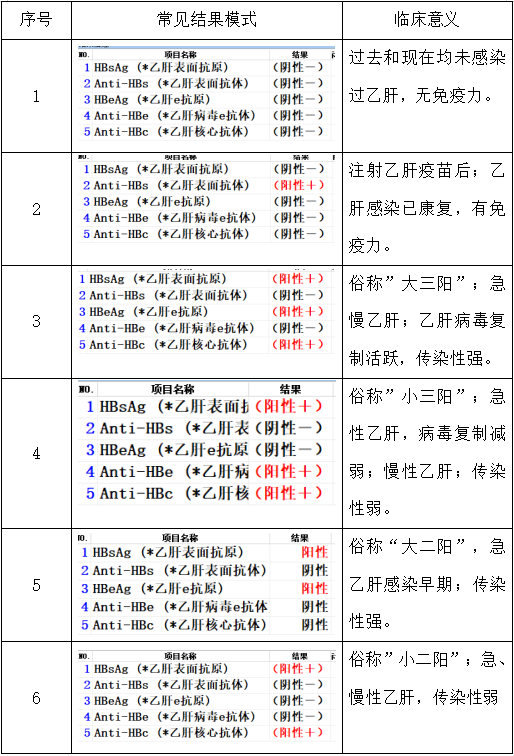 五、乙肝两对半常见模式及临床意义